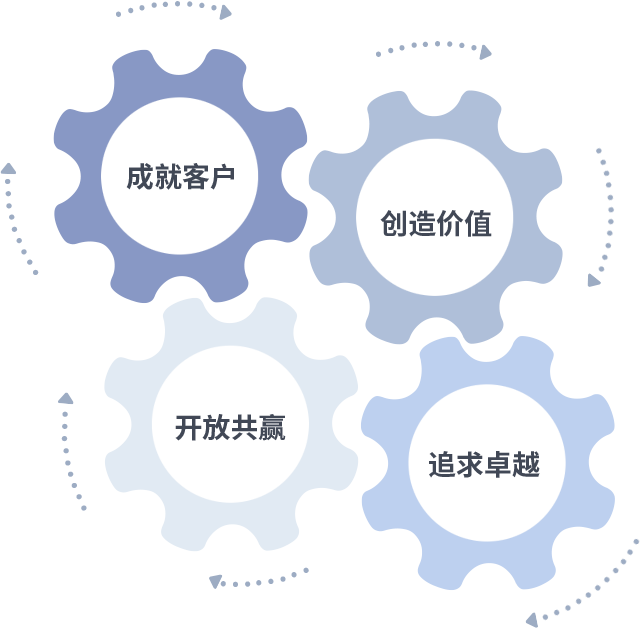 成就客户是一切决策的出发点,创造价值是衡量所有工作的标准,追求卓越是J9游会做事做人的态度,开放共赢是J9游会的格局也是最终的结果。价值观的齿轮环环相扣,推动着组织里的每个人不断向前。